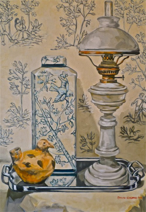 Still life with ginger jar and lamp, on toile. Oil on canvas framed 73x53cm SOLD » Still life with ginger jar and lamp, on toile