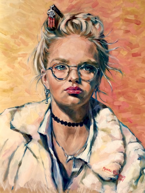 A portrait of Phoebe 16×20″ framed oil on composition board. 2017 painted from life at the Victorian Artists Society FOR SALE