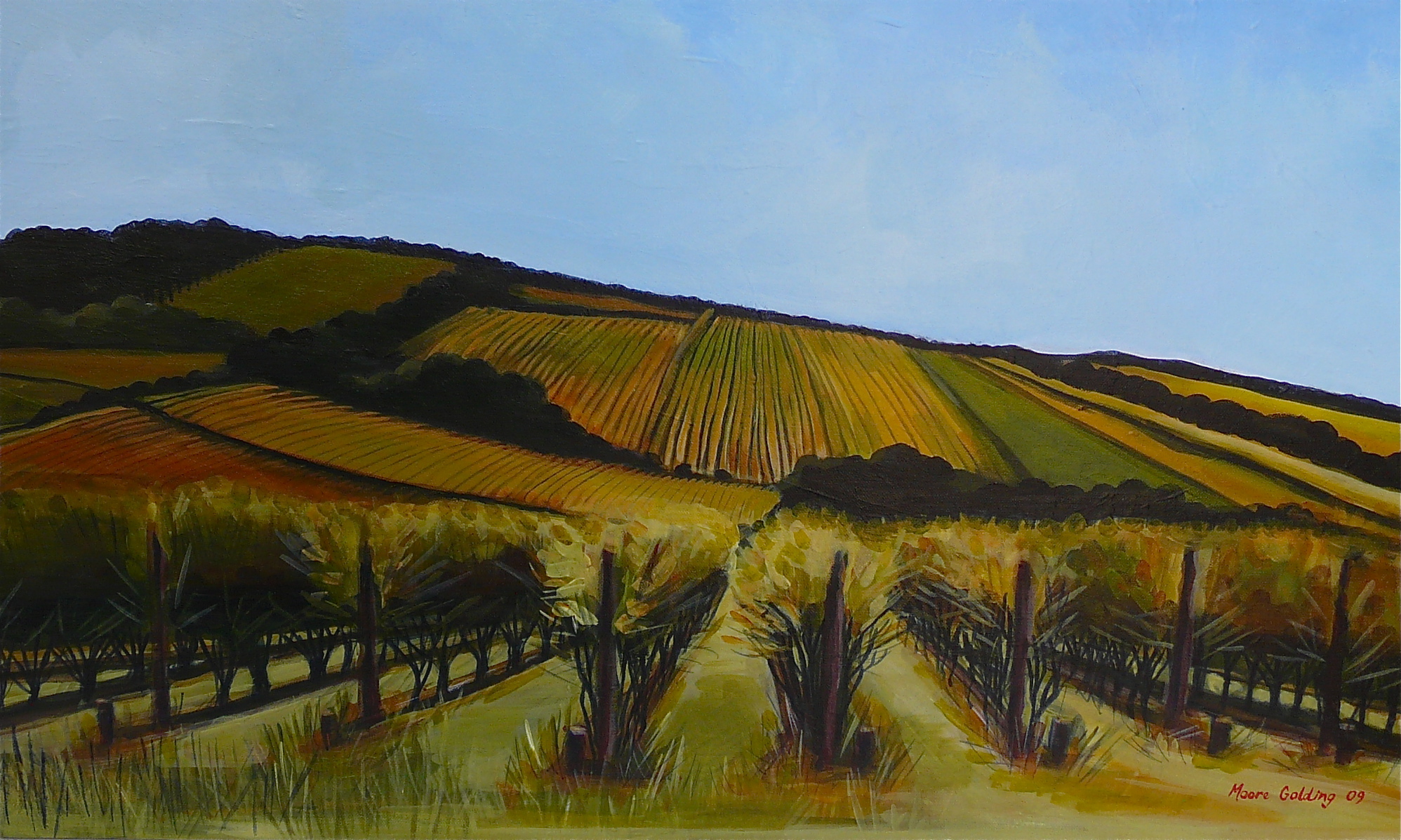 Tuck’s Ridge vineyard, Mornington Peninisula. Acrylic on canvas 76x61x4cms 2009© FOR SALE. Enquiries to lizmooregolding@gmail.com